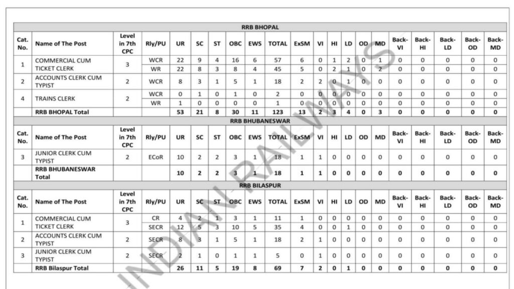 पदों के प्रकार क्लर्क, स्टेशन मास्टर, टाइम कीपर, गुड्स गार्ड, ट्रैफिक असिस्टेंट आदि